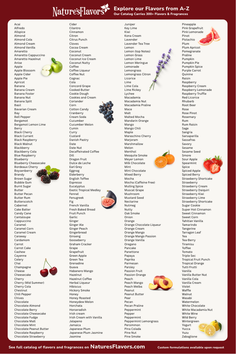 Functions across multiple temperature ranges from cold beverages to hot baked goods. Compatible with both dairy and non-dairy bases. Works in acidic and neutral pH environments. Suitable for professional food service operations as well as home cooking applications. Can be combined with other extracts to create custom flavor profiles.